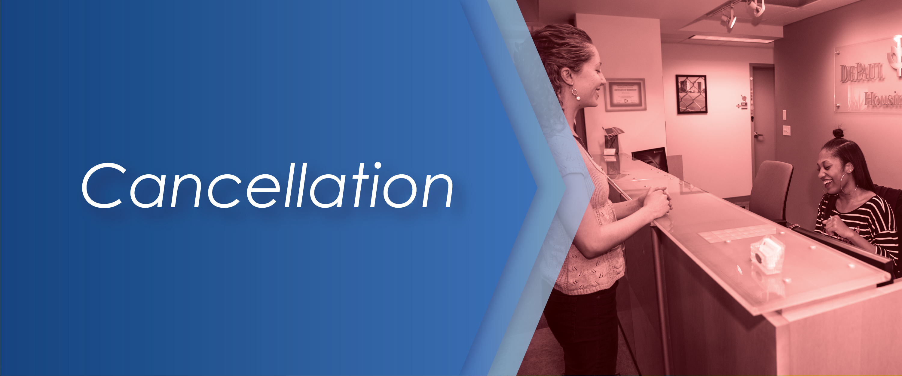 All cancellations must be made in writing directly to DePaul Housing; verbal cancellations will not be honored. A cancellation is complete when the steps below are successfully completed. The student must: