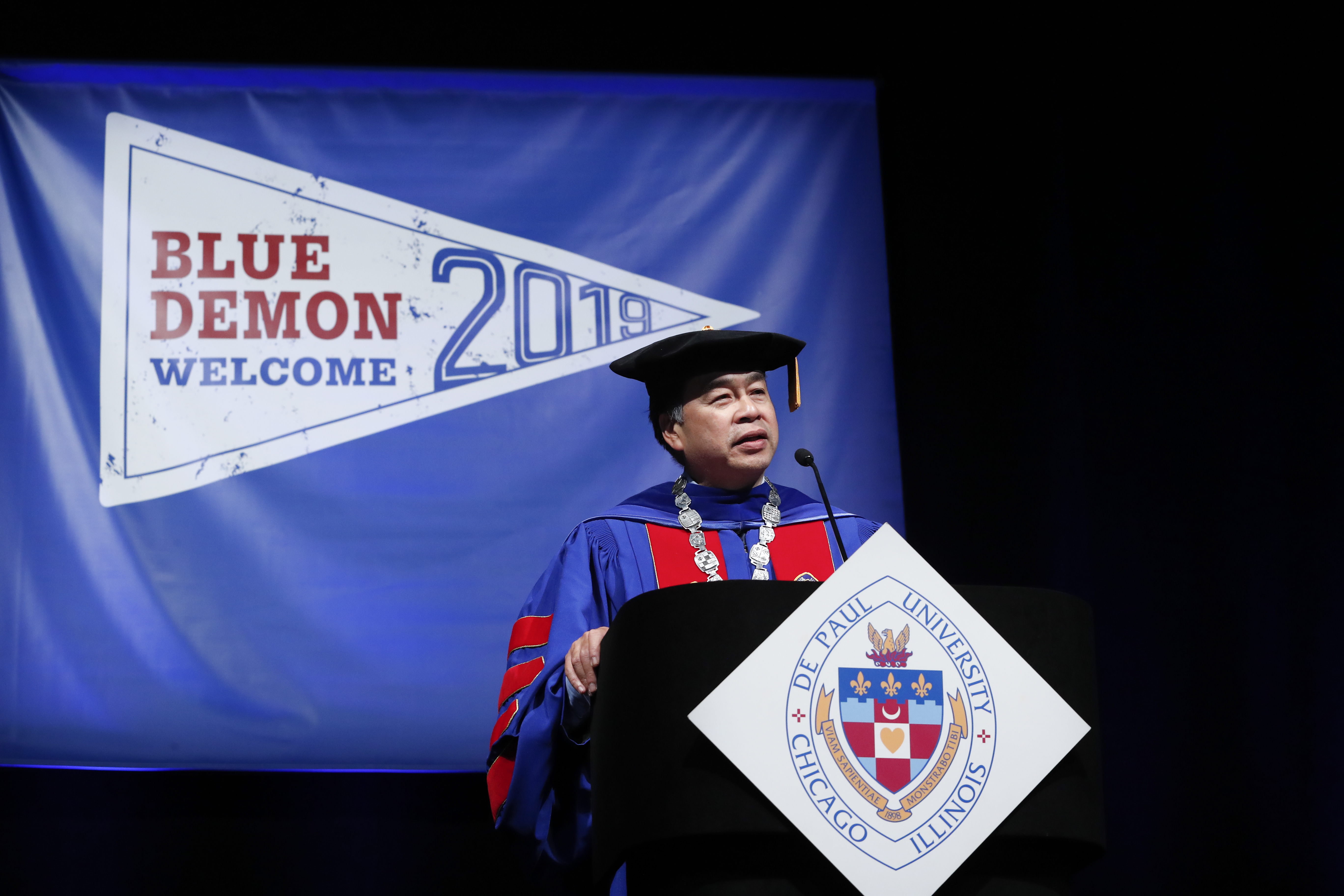 Join us for Blue Demon Welcome on Tuesday, September 9! Blue Demon Welcome is DePaul's annual New Student Convocation that celebrates the beginning of the DePaul journey for all new undergrads including freshman and transfer students. This celebration at the start of the academic year welcomes new students to DePaul.