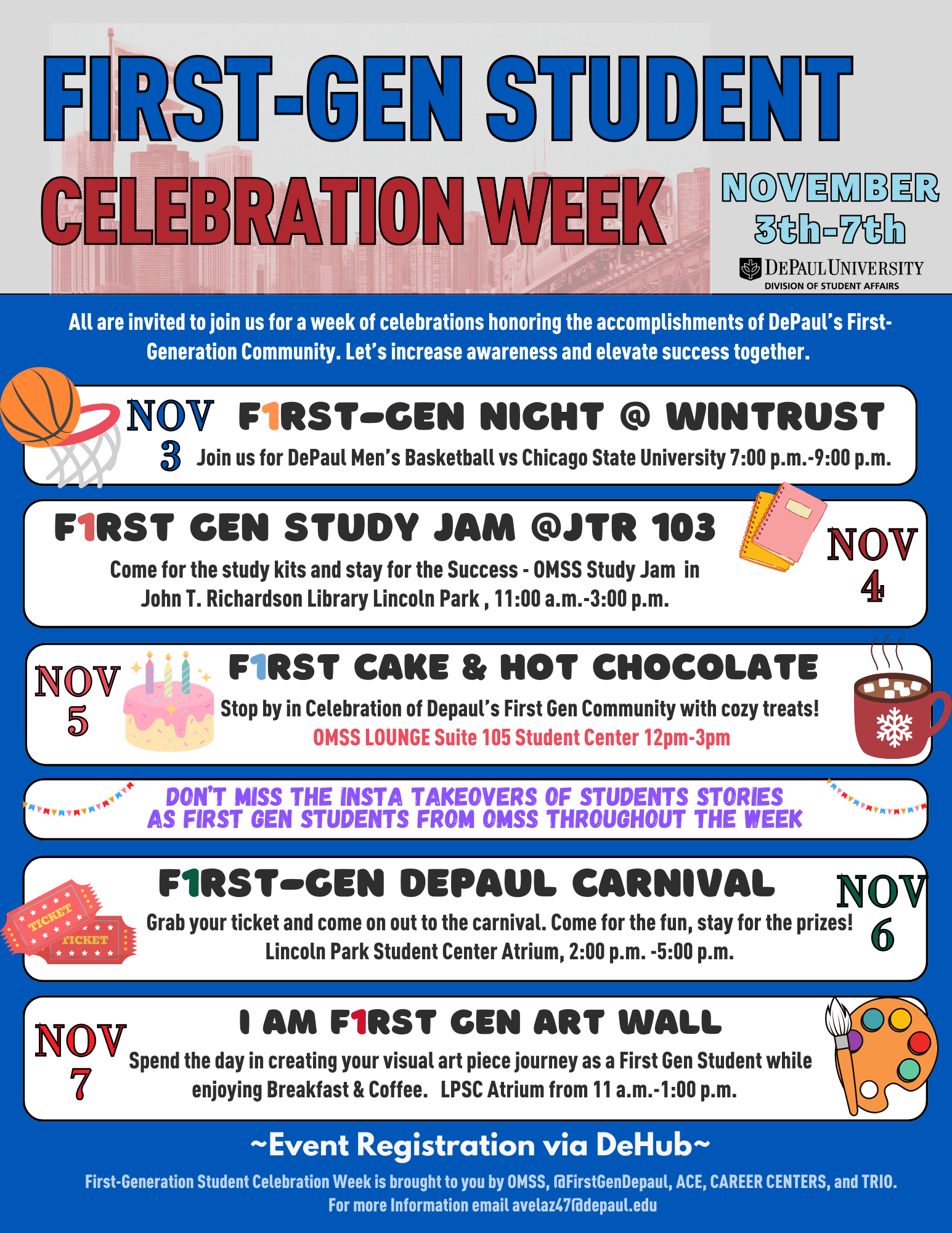 This FGCC Week event is an opportunity to raise awareness about and celebrate first-generation student success within the DePaul community. Additionally, current first-generation students at DePaul can network with alumni and employers at the game.